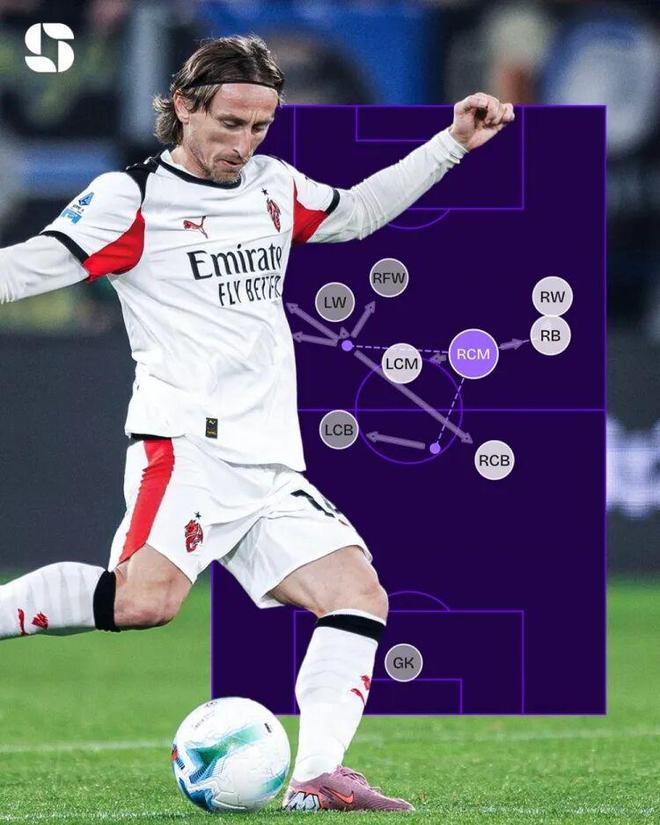 克罗地亚老将莫德里奇在今夏加盟米兰后表现出色,9轮意甲贡献1球2助攻。